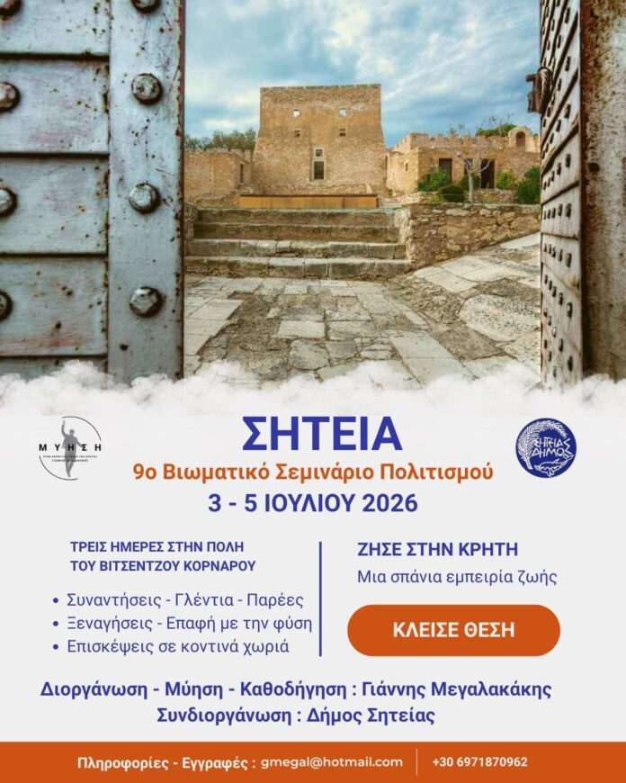 Βιωματικό Σεμινάριο Πολισμού θα πραγματοποιηθεί από τον ερευνητή, χορευτή και δάσκαλο κρητικών χορών Γιάννη Μεγαλακάκη στην Σητεία Λασιθίου από την Παρασκευή 3 Ιουλίου έως και την Κυριακή 5 Ιουλίου 2026.