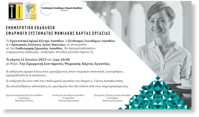 ΑρχικήΕΙΔΗΣΕΙΣΛΑΣΙΘΙΕΝΗΜΕΡΩΤΙΚΗ ΕΚΔΗΛΩΣΗ ΨΗΦΙΑΚΗ ΚΑΡΤΑ ΕΡΓΑΣΙΑΣ ΛΑΣΙΘΙ ΕΝΗΜΕΡΩΤΙΚΗ ΕΚΔΗΛΩΣΗ ΨΗΦΙΑΚΗ ΚΑΡΤΑ ΕΡΓΑΣΙΑΣ By style100fm 6 Ιουνίου, 2025 0 326 μερίδιο FacebookTwitter μερίδιο FacebookTwitter Προηγούμενο άρθροΚλιμάκιο ΠΑΣΟΚ στο Οροπέδιο ΛασιθίουΕπόμενο άρθροΕνημέρωση ελαιοπαραγωγών σχετικά με την υποχρεωτική υποβολή δήλωσης συγκομιδής ελαιοκάρπου style100fm RELATED ARTICLES ΛΑΣΙΘΙ Στην Βουλή Καλεί τον Υπουργό Υποδομών και Μεταφορών η Κ. Σπυριδάκη για τη διακοπή των εργασιών στο έργο Φράγμα Μπραμιανών 13 Οκτωβρίου, 2025 ΛΑΣΙΘΙ ΚOINO KΑΛΕΣΜΑ ΣΤΗΝ ΑΠΕΡΓΙΑ ΤΡΙΤΗ 14 ΟΚΤΩΒΡΗ_ΟΜΑΔΕΣ ΓΥΝΑΙΚΩΝ ΑΓ. ΝΙΚΟΛΑΟΥ & ΣΗΤΕΙΑΣ ΤΗΣ ΟΓΕ 13 Οκτωβρίου, 2025 ΛΑΣΙΘΙ ΕΛΜΕ Λασιθίου – Την 14η Οκτωβρίου Ξανά απεργούμε 13 Οκτωβρίου, 2025 Τελευταία Νέα Ο Γιάννης Ανδρουλάκης αντιπεριφερειάρχης Λασιθίου αναφέρθηκε στα έργα που έγιναν και συνεχίζονται στη Σητεία αλλά και στην στάση του υπουργείου για τα έργα του... 14 Οκτωβρίου, 2025 Στέγη Βιτσέντζος Κορνάρος: Παρουσίαση βιβλίου “Ο νους μου τα βουνά κρατεί – δοκίμιο στην κρητική μαντινάδα” του Γιάννη Ματθαιουδάκη 14 Οκτωβρίου, 2025 Άρση απαγόρευσης χρήσης νερού ανθρώπινης κατανάλωσης στη Δημοτική Κοινότητα Χριστού Δήμου Ιεράπετρας 14 Οκτωβρίου, 2025 Κλιματική αλλαγή και Γεωργία(ΒΙΝΤΕΟ) 13 Οκτωβρίου, 2025 Φόρτωση περισσοτέρων
