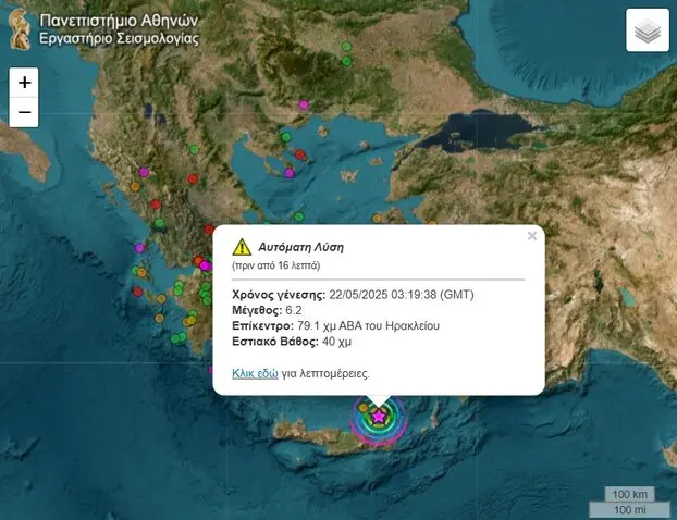 Ισχυρή σεισμική δόνηση σημειώθηκε στις 06.19 το πρωί, τρομοκρατώντας τους Κρητικούς. Η δόνηση, μεγέθους 6,2 ρίχτερ σημειώθηκε στη θαλάσσια περιοχή 55 χλμ ΒΒΑ της Νεάπολης Λασιθίου.