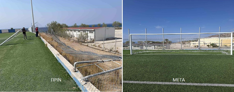 Στο πλαίσιο των παρεμβάσεων, τοποθετήθηκε καινούρια περίφραξη καθώς και νέα εστία ποδοσφαίρου, καθώς οι προηγούμενες είχαν υποστεί σημαντικές φθορές, καθιστώντας αδύνατη τη λειτουργία του γηπέδου.