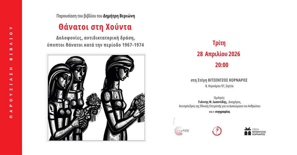 ύποπτοι θάνατοι κατά την περίοδο 1967-1974” εκδόσεις ΤΟΠΟΣ.