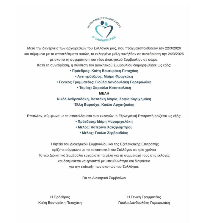 ΑρχικήΕΙΔΗΣΕΙΣΣΗΤΕΙΑΣυγκρότηση νέου διοικητικού συμβουλίου σε σώμα του Φιλανθρωπικού Συλλόγου Σητείας ΣΗΤΕΙΑ Συγκρότηση νέου διοικητικού συμβουλίου σε σώμα του Φιλανθρωπικού Συλλόγου Σητείας By style100fm 26 Μαρτίου, 2026 0 162 μερίδιο FacebookTwitter μερίδιο FacebookTwitter Προηγούμενο άρθροΛασίθι: Έπαιξε στον τζόγο 11 χιλιάδες ευρώ και… σκηνοθέτησε διάρρηξηΕπόμενο άρθροΓΕΚ ΤΕΡΝΑ: Το πρώτο κινητό X-ray στην μάχη κατά του λαθρεμπορίου στην Ελλάδα style100fm RELATED ARTICLES ΣΗΤΕΙΑ Νίκος Κουρουπάκης: Δεν πάει άλλο – Παρών για πολιτική αλλαγή με το ΠΑΣΟΚ που μπορεί να επαναφέρει στο προσκήνιο την πολιτική με όρους ισονομίας,... 4 Απριλίου, 2026 ΣΗΤΕΙΑ Ανακοίνωση συλλογής τροφίμων 3 Απριλίου, 2026 ΣΗΤΕΙΑ Σύλλογος Εκπαιδευτικών Π.Ε. Σητείας «ο Μύσων»: «όχι στην εφαρμογή της τηλ- εκπαίδευσης λόγω καιρικών φαινόμενων» 2 Απριλίου, 2026 Τελευταία Νέα Νίκος Κουρουπάκης: Δεν πάει άλλο – Παρών για πολιτική αλλαγή με το ΠΑΣΟΚ που μπορεί να επαναφέρει στο προσκήνιο την πολιτική με όρους ισονομίας,... 4 Απριλίου, 2026 Παράδοση οδοντοβουρτσών σε σχολείο της Ιεράπετρας από την Π.Ε. Λασιθίου 4 Απριλίου, 2026 Ο Λευτέρης Καρχιμάκης που πρώτευσε στις εκλογές του ΠΑΣΟΚ για την κεντρική επιτροπή μίλησε στο Style 100 για την πολιτική κατάσταση και τις προτάσεις... 3 Απριλίου, 2026 Ανακοίνωση συλλογής τροφίμων 3 Απριλίου, 2026 Φόρτωση περισσοτέρων
